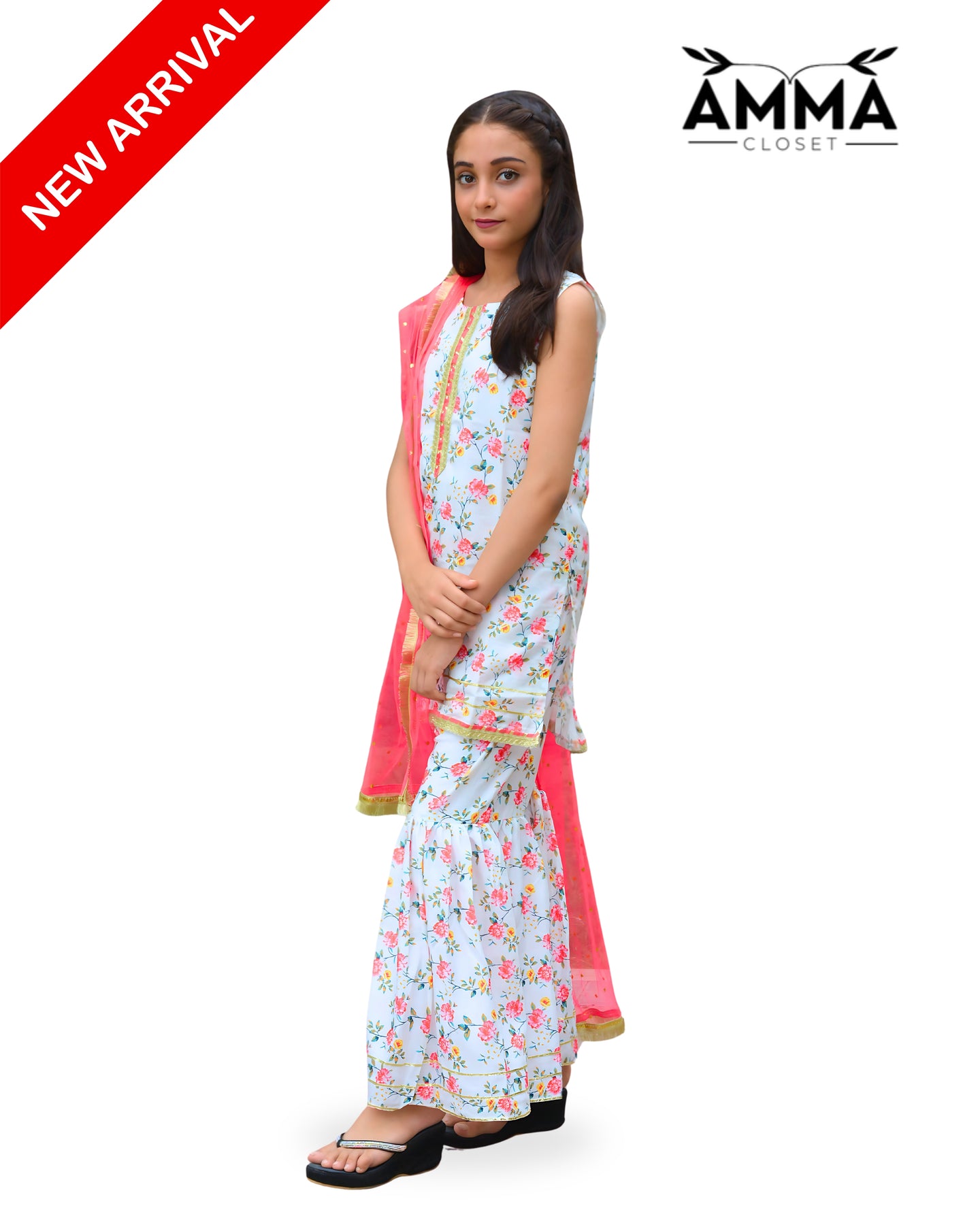 Add a touch of grace to your wardrobe with this White Swiss Lawn Gharara Set, styled with a chic top, classic gharara, and dupatta — perfect for casual gatherings and party wear.