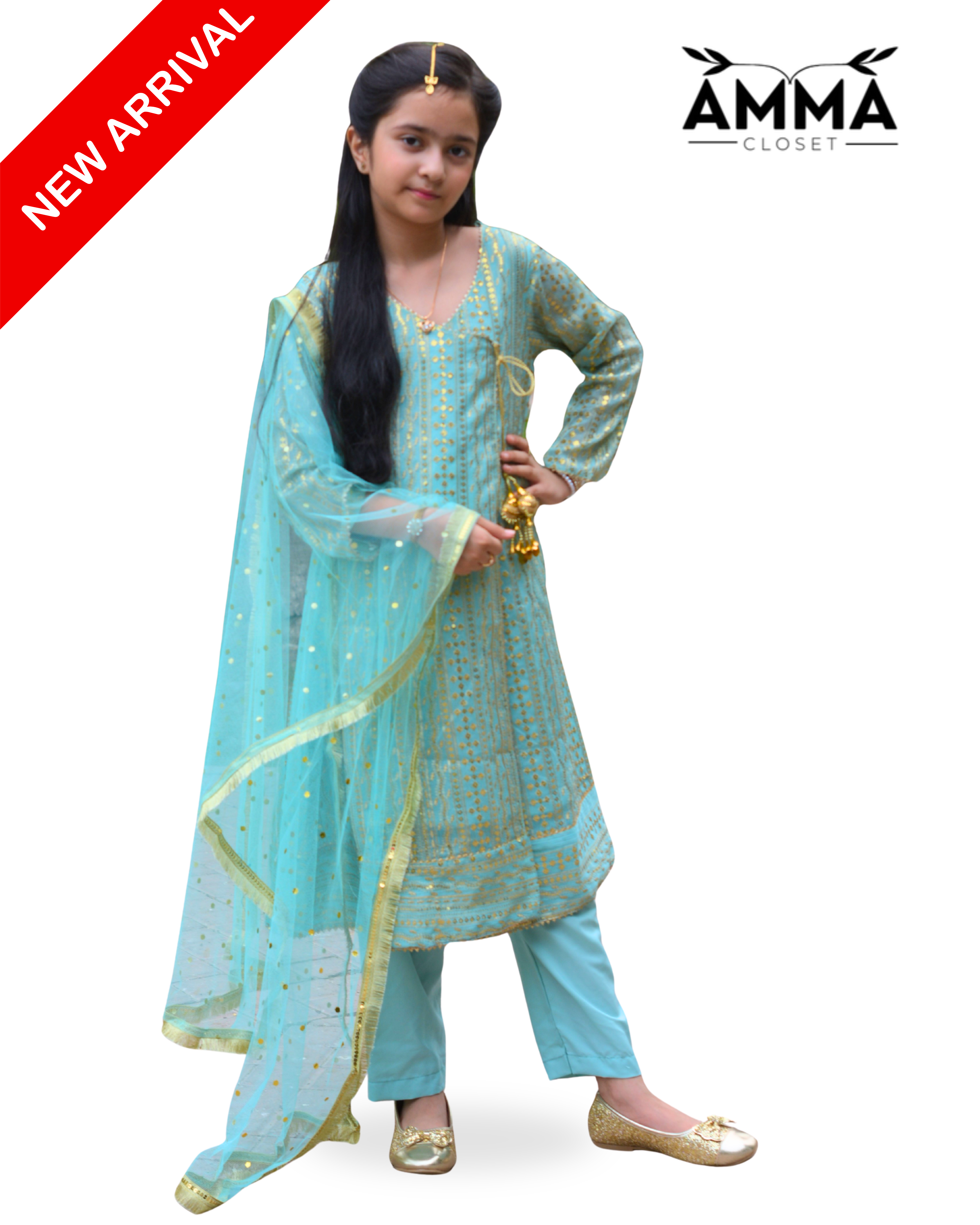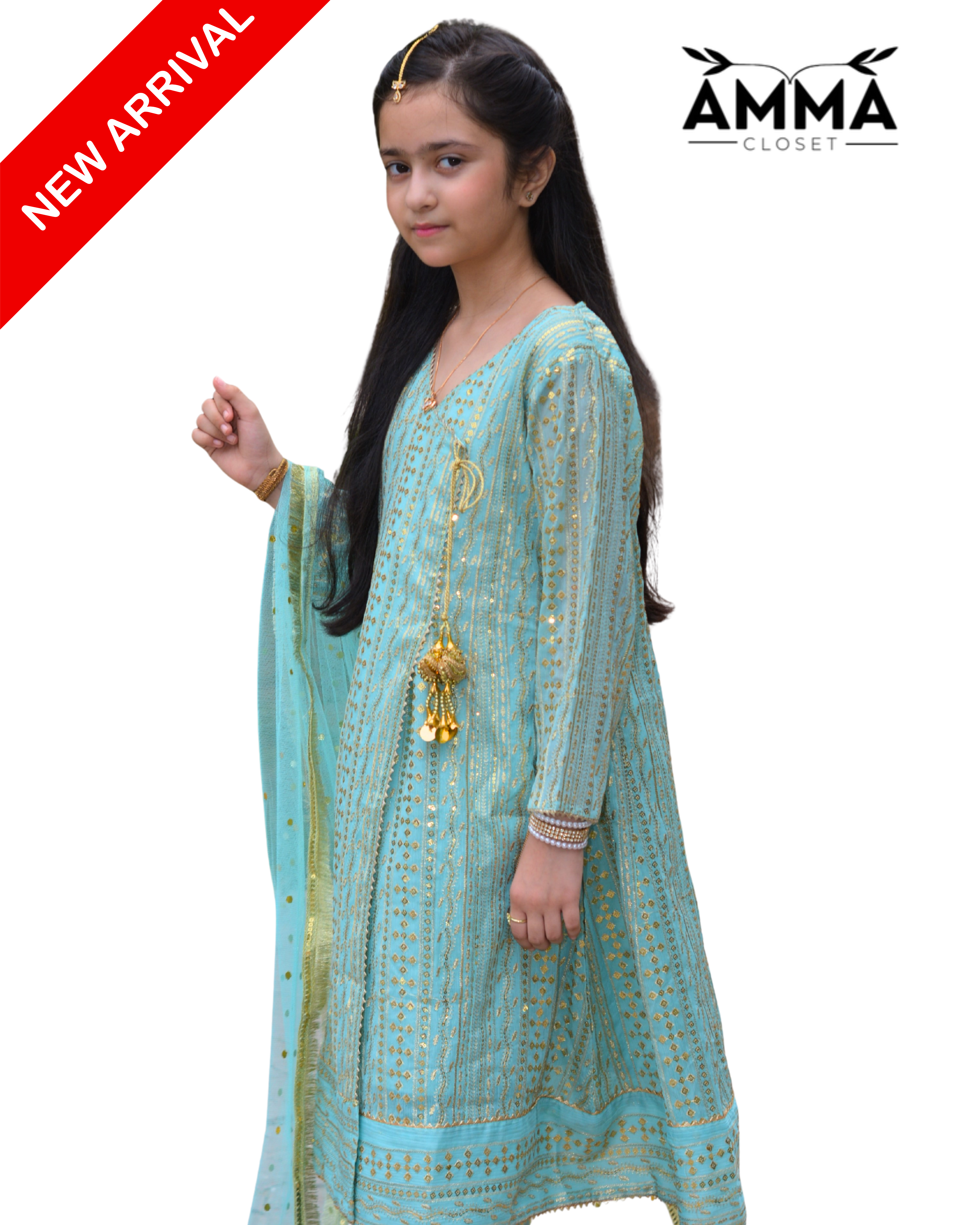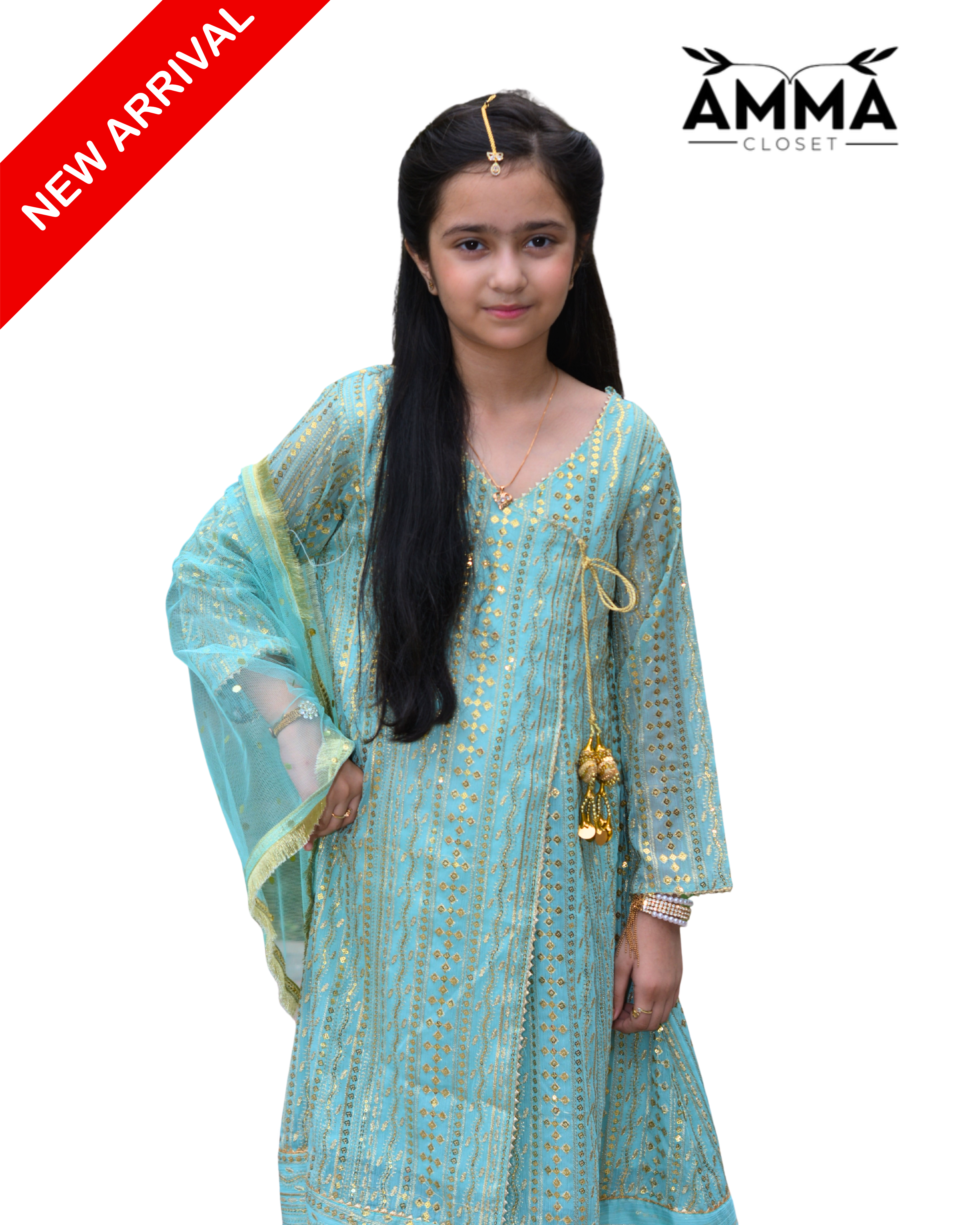 Turn heads this season with our Angrakha Set, crafted in chiffon with elegant detailing, paired with straight bottoms and a dotted net dupatta finished with Kiran lace — a flawless pick for festive and party wear.