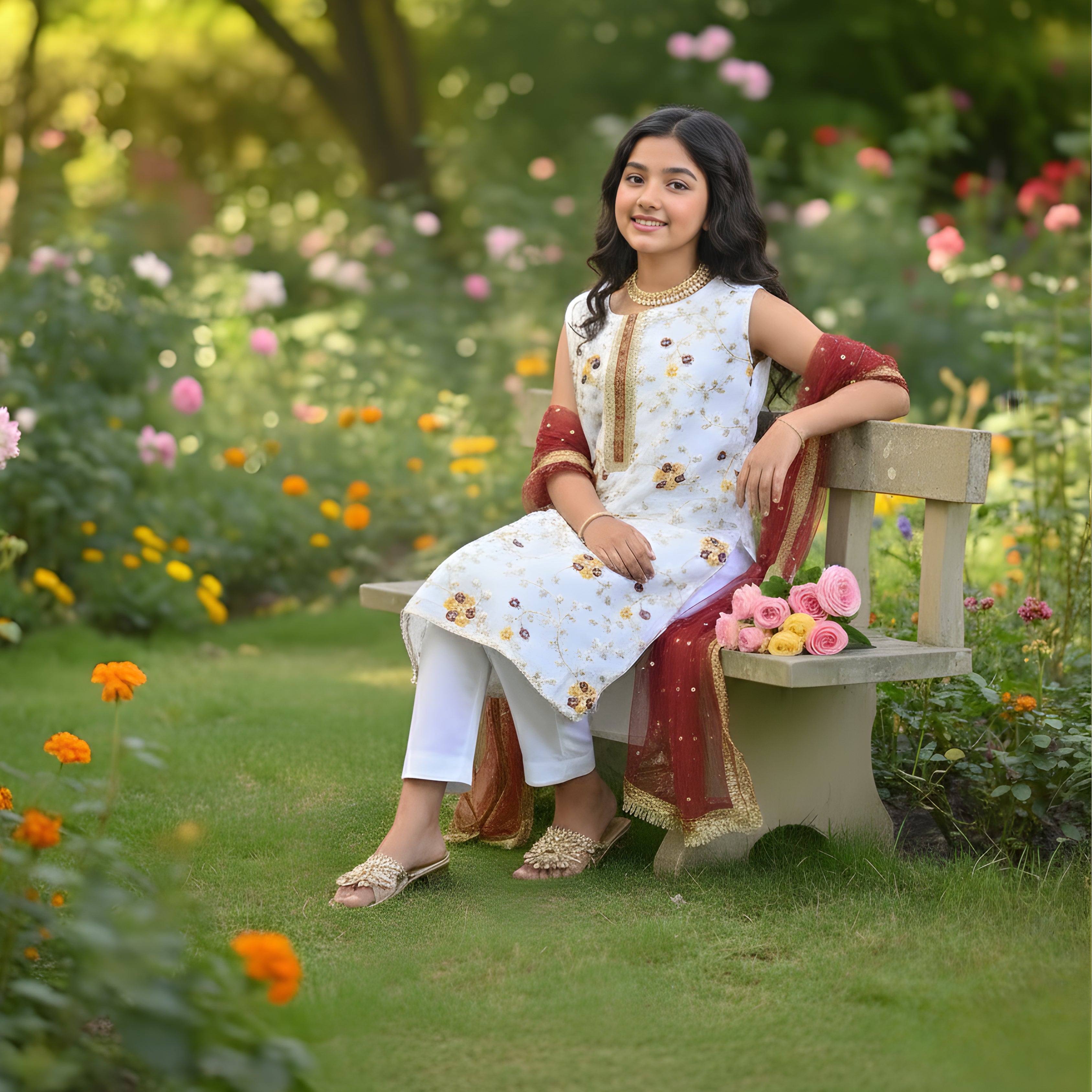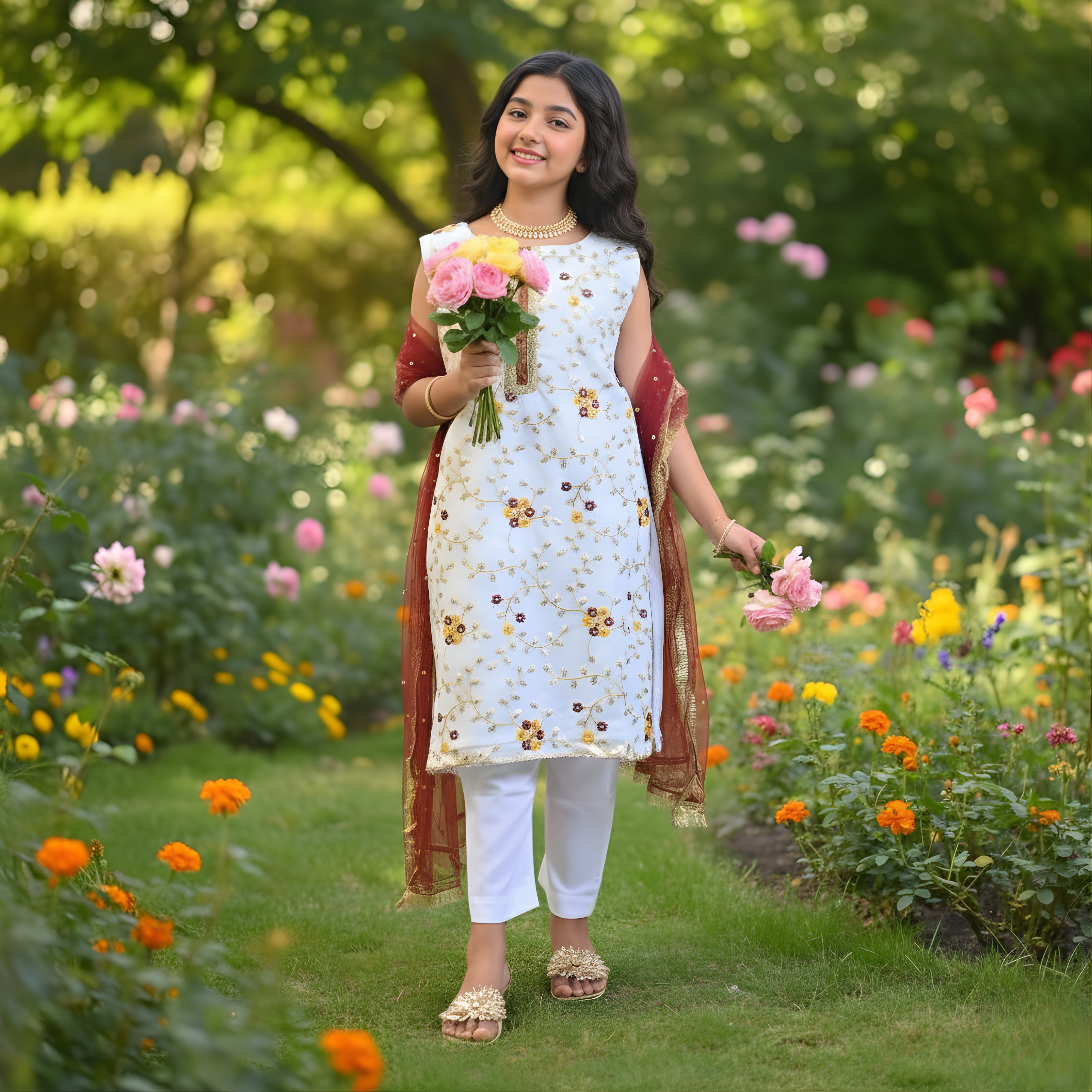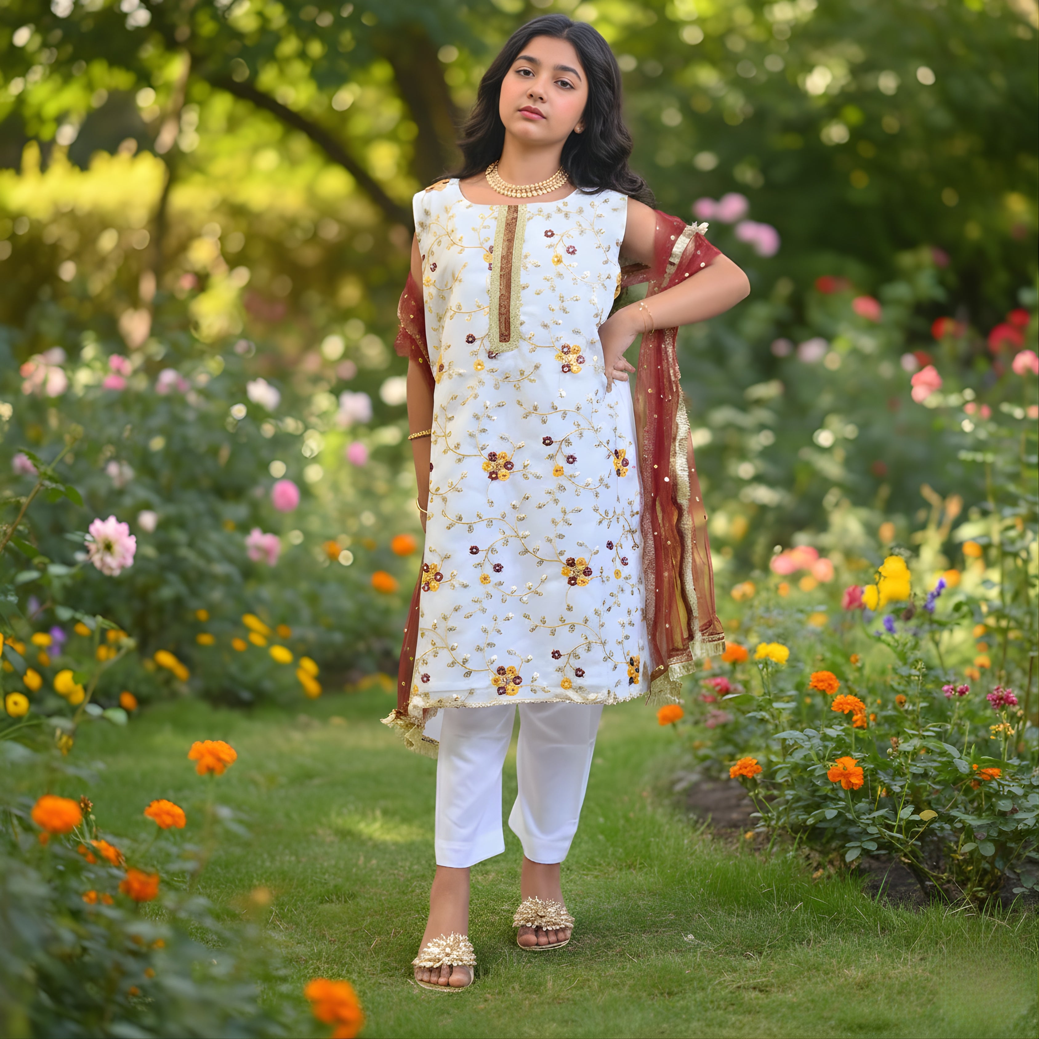 Step into effortless style with this 3-piece set, crafted from organza fabric and featuring vibrant — perfect computer embroidery or comfortable and Eid, Weddings, and Special Events