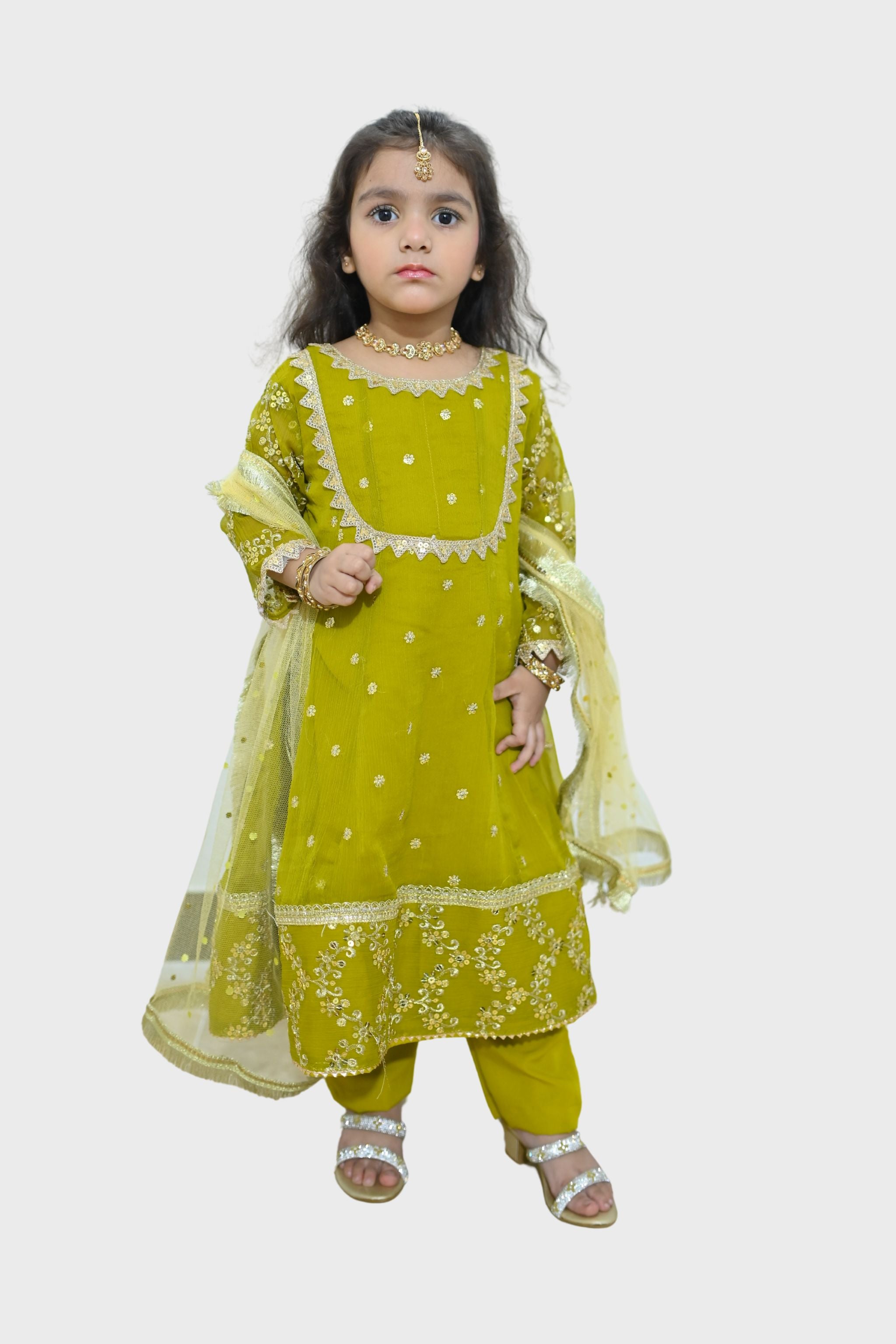 A graceful 3-piece outfit featuring delicate embroidery, perfect for festive and traditional occasions.