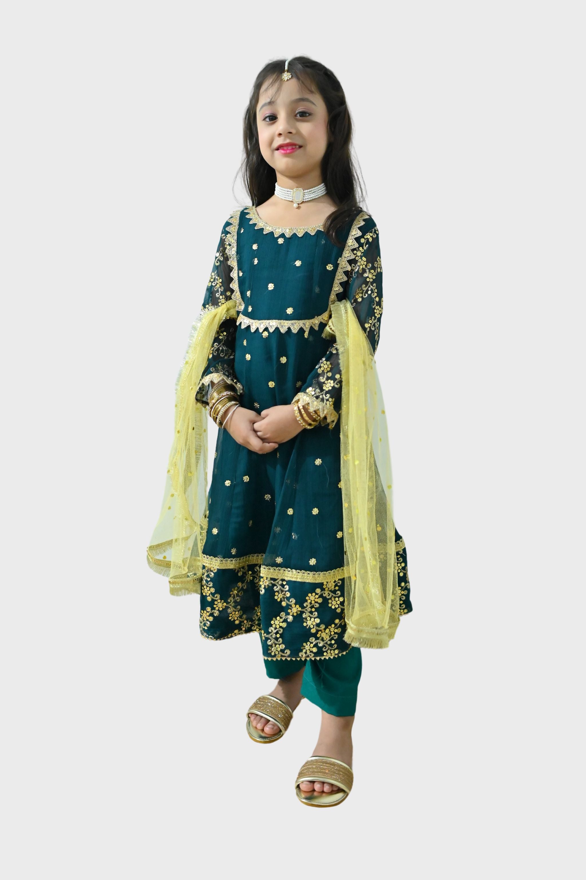 A graceful 3-piece outfit featuring delicate embroidery, perfect for festive and traditional occasions.