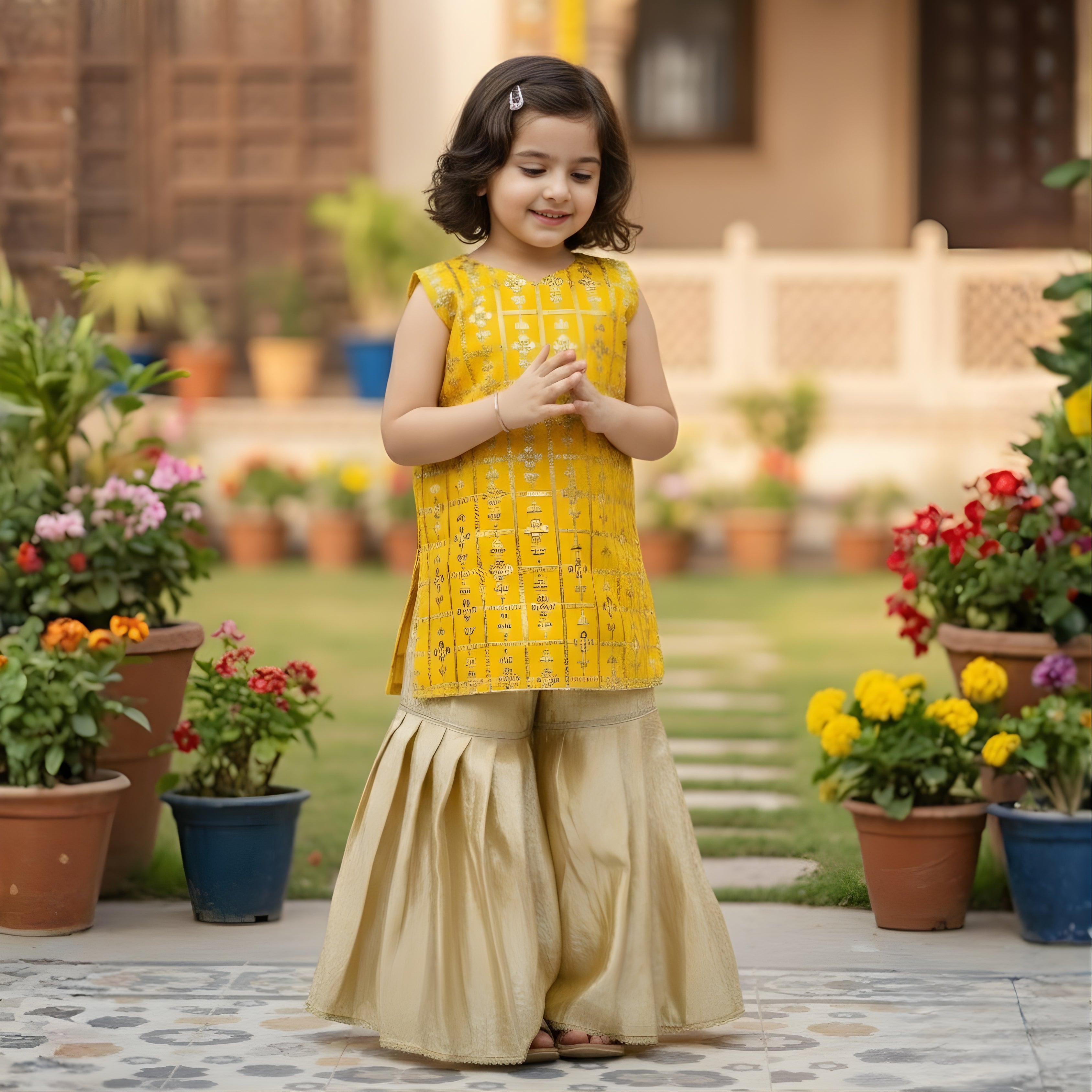 Make a statement with this elegant 3-piece Gharara set, beautifully crafted using premium kasab net and luxurious Jamawar. The outfit offers a graceful fall with a rich traditional touch, while the Net Dotted Dupatta adds a soft and delicate charm — making it a perfect pick for Eid, weddings, and festive celebrations.