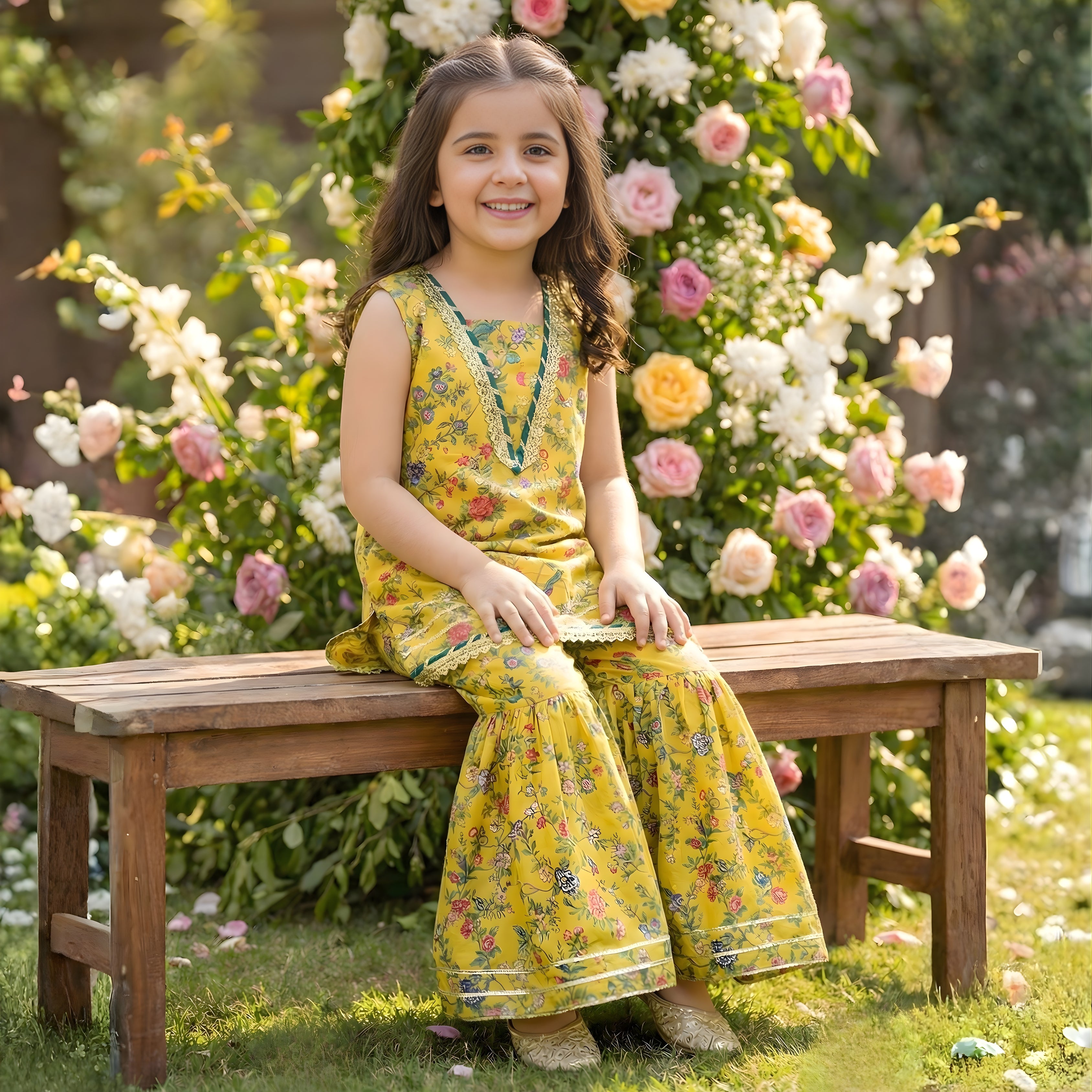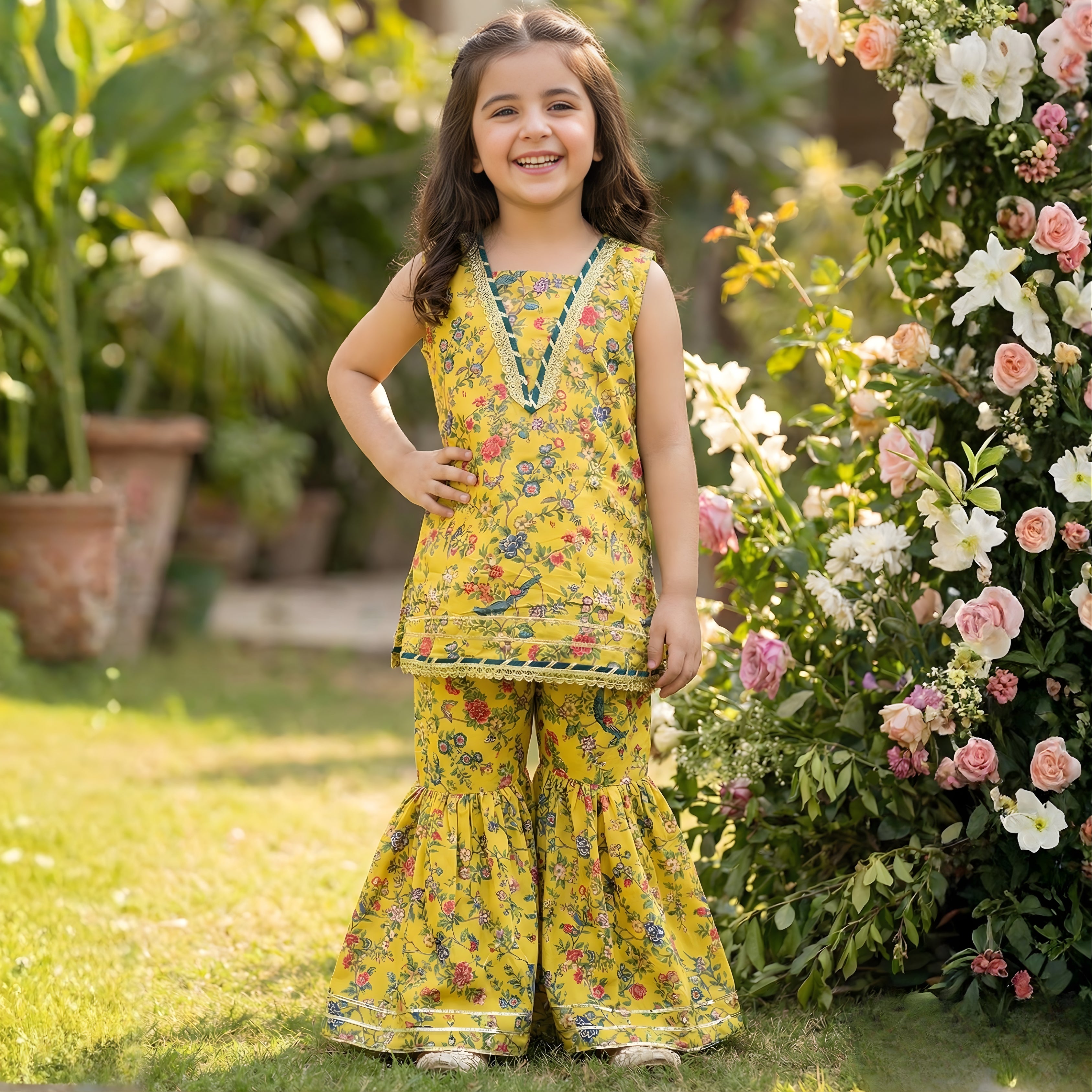 Add a touch of grace to your wardrobe with this Swiss Lawn Gharara Set, styled with a chic top, classic gharara, and dupatta — perfect for casual gatherings and party wear.